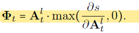 使用Grad-CAM计算activation map,计算方式为 image和caption相似度的标量s对attention score的梯度。公式如下: