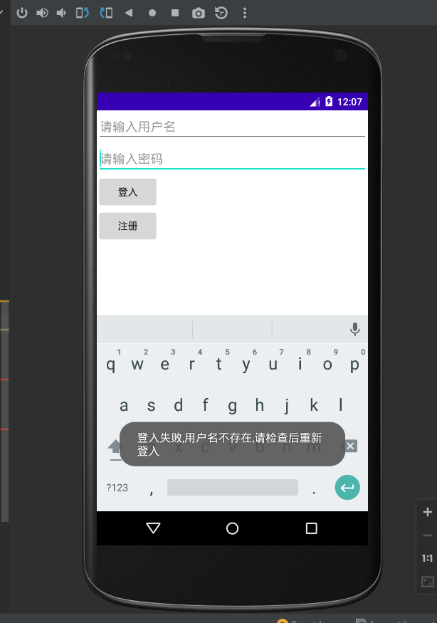 Toast.makeText(this,"登入失败,用户名不存在,请检查后重新登入",1).show();