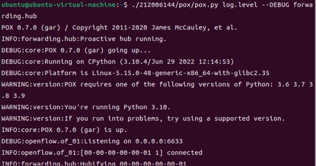 1.搭建下图所示SDN拓扑,协议使用Open Flow 1.0,控制器使用部署于本地的POX(默认监听6633端口)