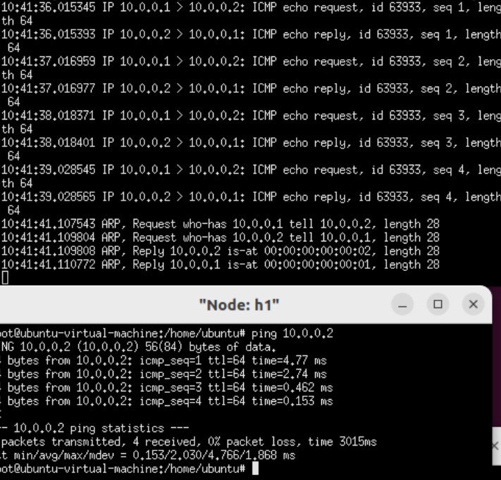 # 发往10.0.0.1的数据流将会从交换机的端口1转发进来/交换机的端口2/3转发出去