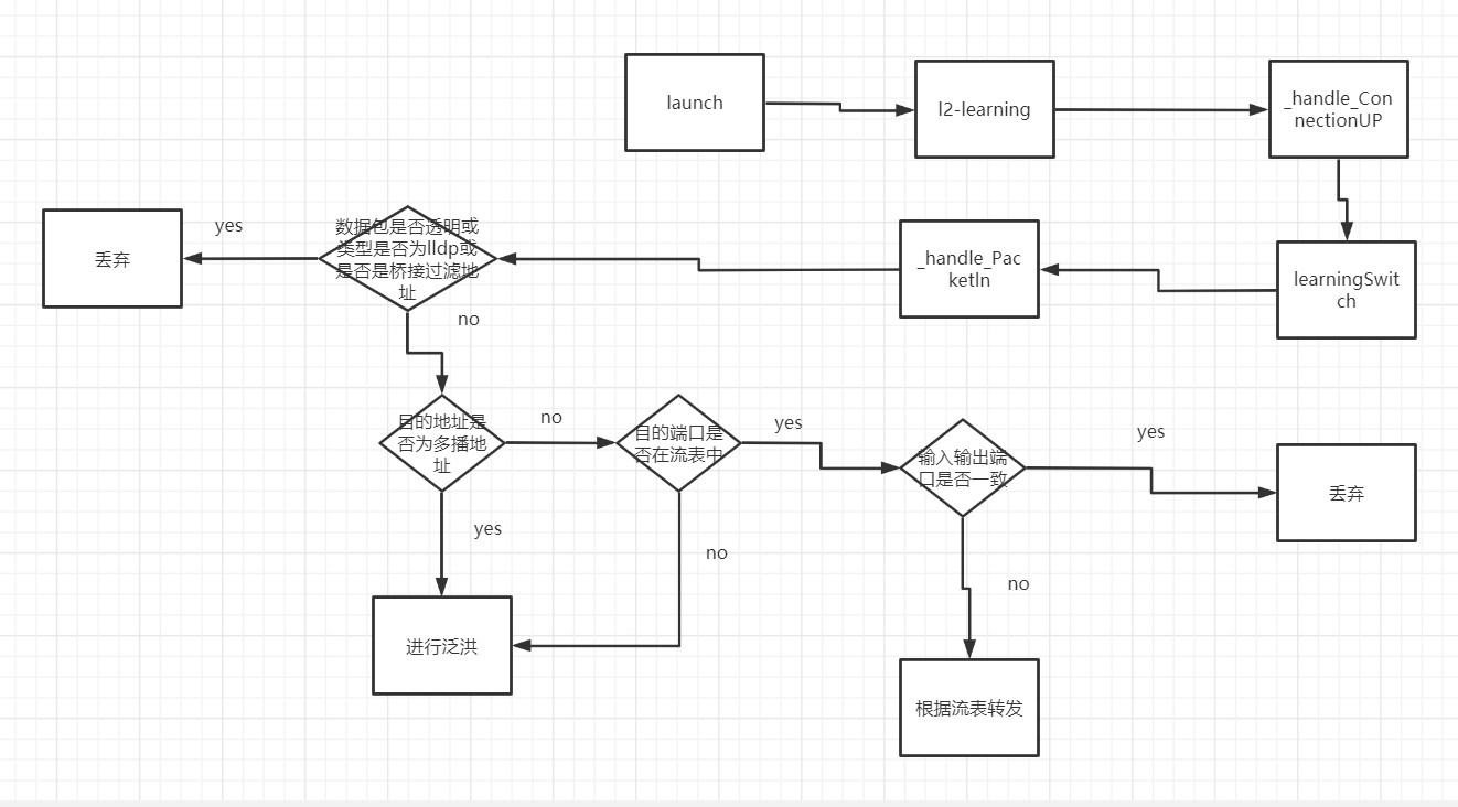 3.阅读L2_learning模块代码,画出程序流程图,使用 tcpdump 验证Switch模块