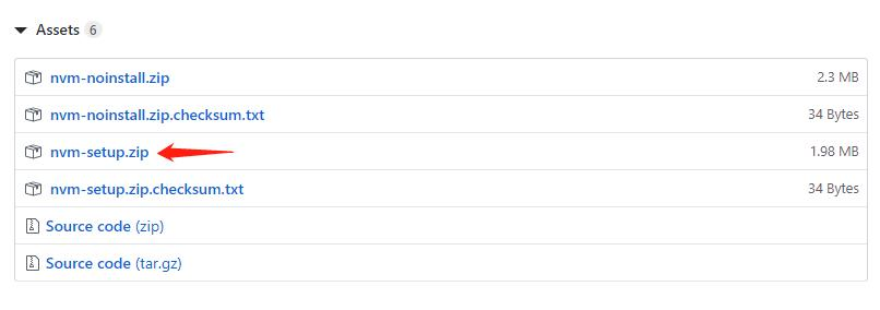 (2)进入安装包下载地址:https://github.com/coreybutler/nvm-windows/releases,选择 nvm-setup.zip