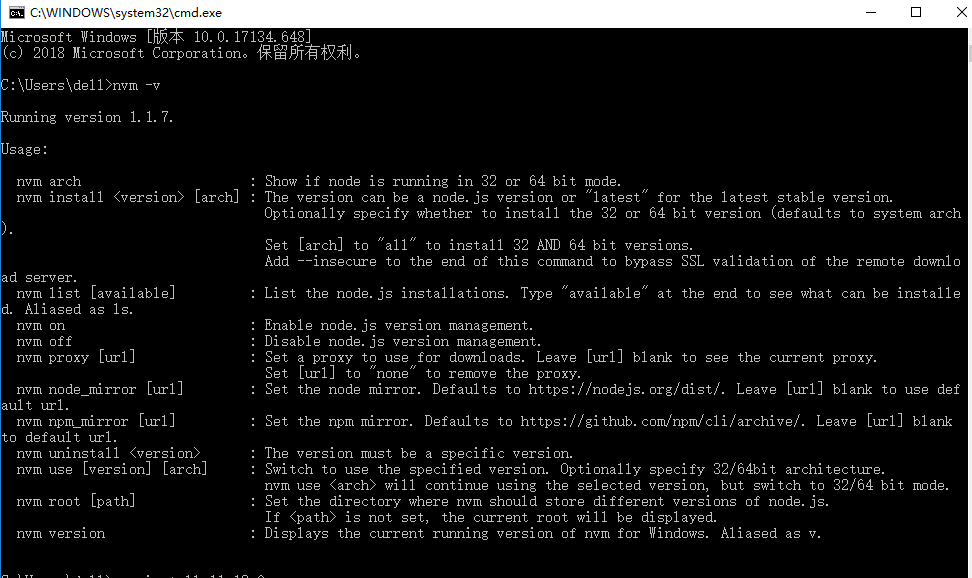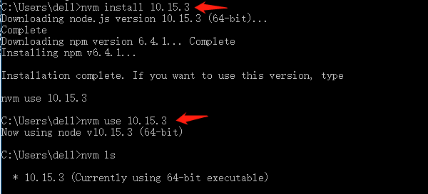 - arch 表示系统位数,默认是64位,若操作系统是32位,需要执行命令:nvm install 10.15.3 32
