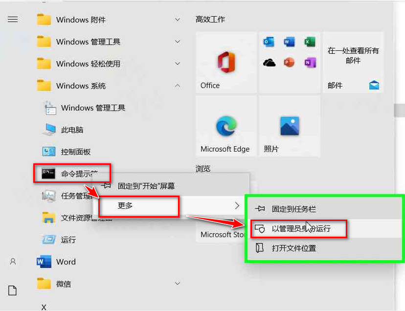 接下来我们使用管理员身份打开cmd(磁盘操作系统):