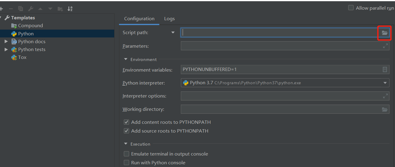 4、点击红框出,选择要执行的py文件,并点ok保存;