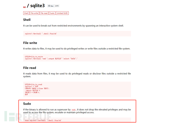 在https://gtfobins.github.io/上查询linux下关于sqlite3的提权漏洞
