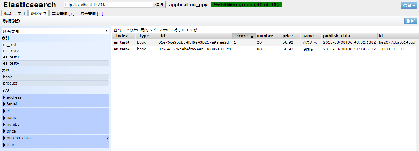 /** * 测试更新 */ @Test public static void update(){ updateRecord record = new updateRecord(); String index = "es_test4"; String type = "book"; String id = "8276e3679d4b4fca94ed806092a373c0"; Map<String, Object> map = new HashMap<String, Object>(); map.put("number", 80); map.put("price", 58.92); map.put("name", "狼图腾"); map.put("publish_data", new Date()); map.put("id", "11111111111"); map.put("title", "励志故事"); String msg = record.updateRecord(index, type, id, map); System.out.println(msg); }