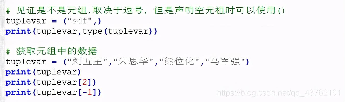 获取字符串中的数据:跟列表list 元组tuple的取值一模一样(正向下标,反向下标)
