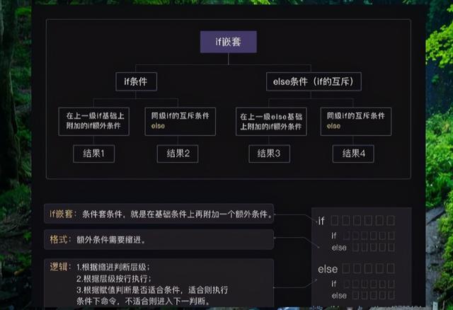 在if…else条件语句中,if和else各自抱团,形成两个不同的代码块。表示的是条件和其他条件的互斥关系——如果不满足if条件,就执行else其他条件。