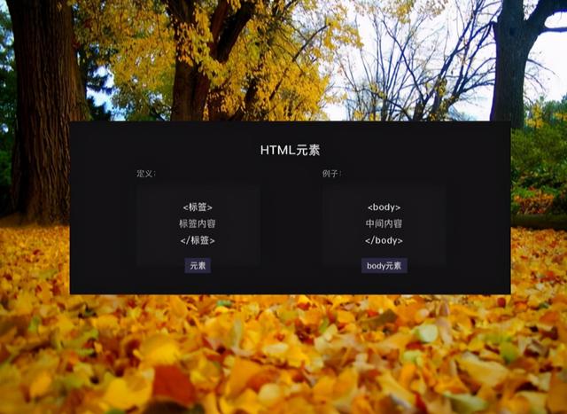 事实上,开始标签+结束标签+中间的所有内容,它们在一起就组成了【元素】。