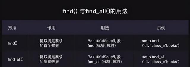 这一步,又可以分为两部分知识:find()与find_all(),以及Tag对象。