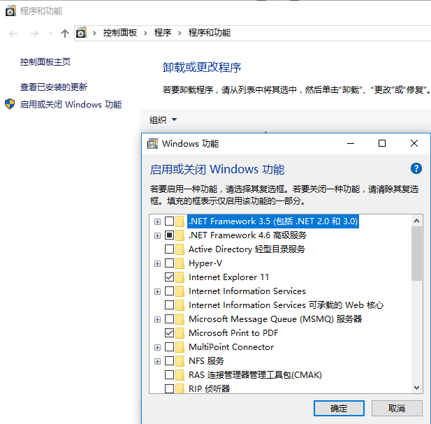 启用或关闭windows功能