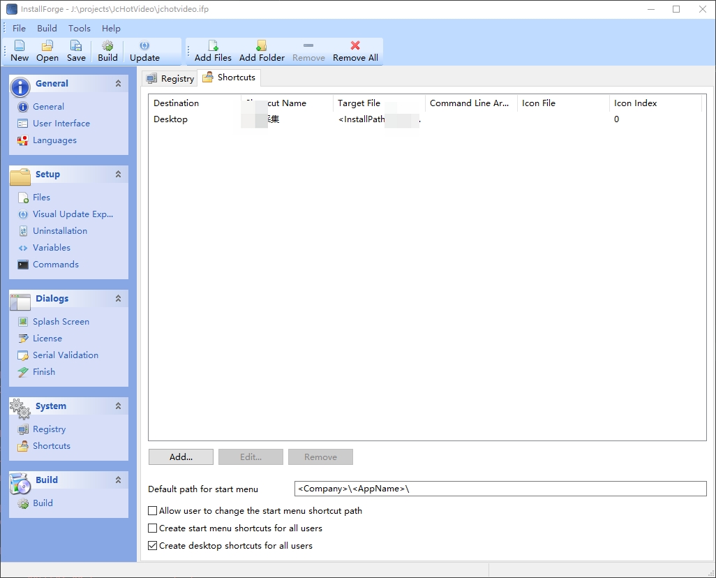 这里的图标是安装包和卸载程序的icon,压缩方式用默认的LZMA时无法进行build,不知道什么原因,改成Deflare就可以了。
