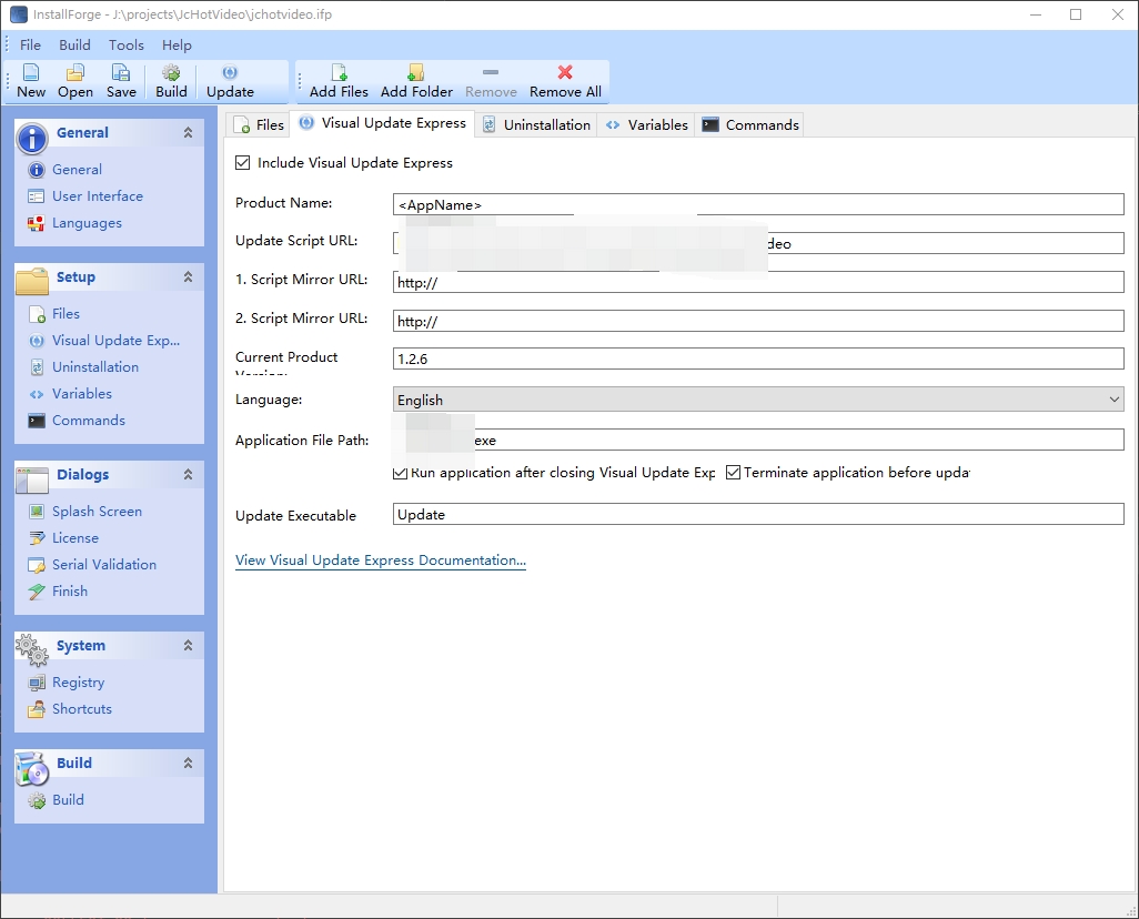 参考文档: https://installforge.net/support1/docs/setting-up-visual-update-express/