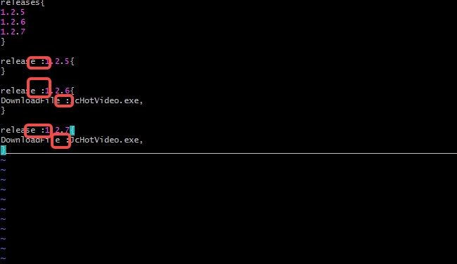 releases{ 1.0 1.1 } release:1.0{ } release:1.1{ DownloadFile:MyProgram.exe, DownloadFile:Builder.exe,bin }