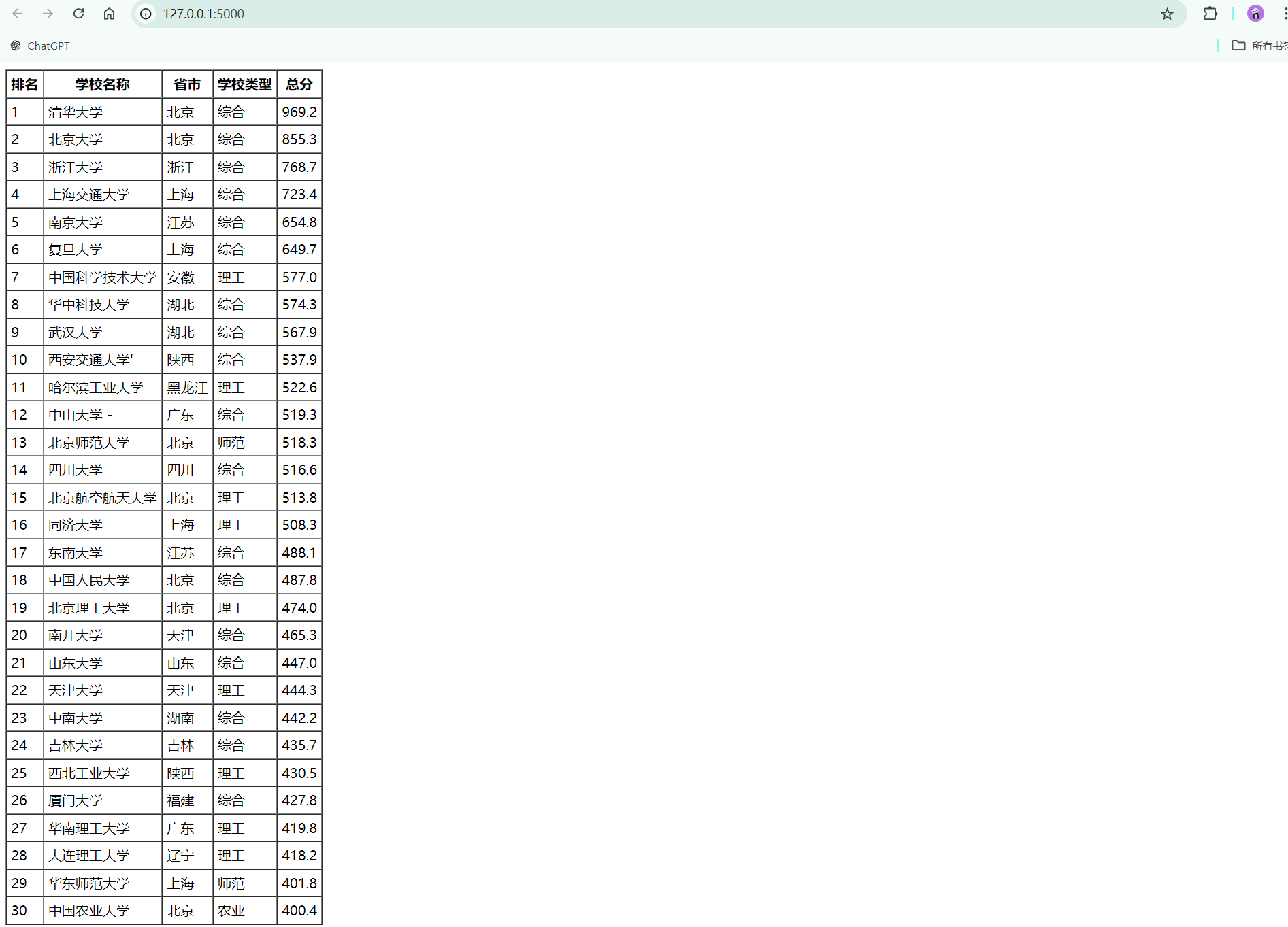 html_table += ' <tr><th>排名</th><th>学校名称</th><th>省市</th><th>学校类型</th><th>总分</th></tr>\n'