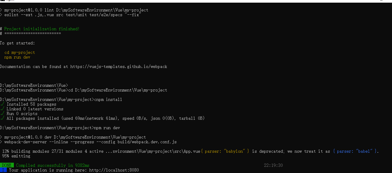 然后命令行键入创建一个基于 webpack 模板的新项目: