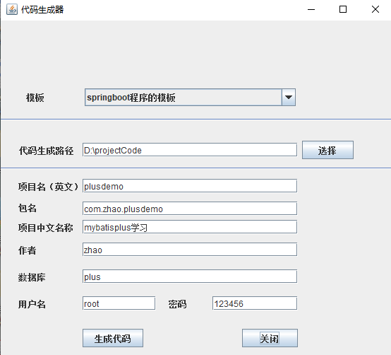 项目地址:https://gitee.com/richOne/CodeGenerationTool