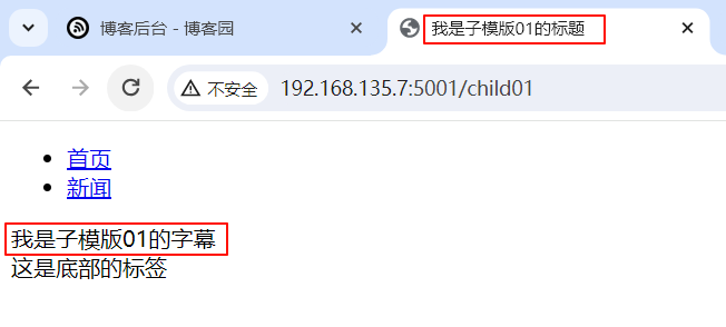 子模版01调用效果:对于标题和内容已经动态添加进去。