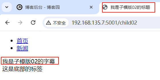 子模版02调用效果:对于标题和内容已经动态添加进去。