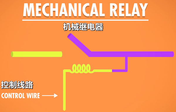 晶体管有两个电极,我们称之为发射机和集电集。电极之间有一种材料隔开它们,这种材料有时候导电,有时候不导电(这叫半导体),控制线连到一个“门”电极,通过改变基级的电荷,我们可以控制半导体材料的导电性,来允许电流流动获不流动。就实现了和之前真空管、继电器一样的功能。