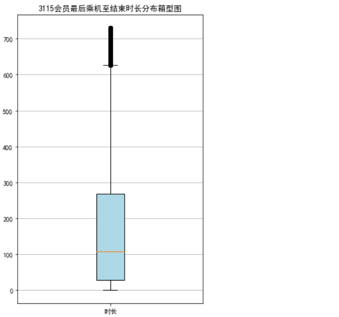 plt.title('3115会员最后乘机至结束时长分布箱型图')