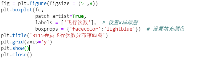 plt.boxplot(lte, patch_artist=True, labels=['时长'], boxprops={'facecolor': 'lightblue'}) #设置填充颜色