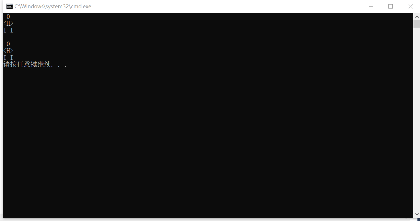 #include<stdio.h> int main(){ printf(" 0 0\n"); printf("<H> <H>\n"); printf("I I I I\n"); return 0; }