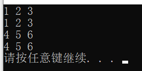 // 使用指针变量间接访问一维数组 #include <stdio.h> #include <stdlib.h> const int N=3; int main() { int a[N]; int *p,i; // 通过指针变量p,完成数组元素输入 for(p=a; p<a+N; p++) scanf("%d", p); // 过指针变量p,完成数组元素输出 for(p=a; p<a+N; p++) printf("%d ", *p); printf("\n"); p = a; //通过指针变量p,完成数组元素输入 for(i=0; i<N; i++) scanf("%d", p+i); // 通过指针变量p,完成数组元素输出 for(i=0; i<N; i++) printf("%d ", *(p+i)); printf("\n"); return 0; }