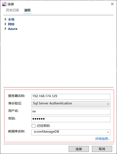 使用SQL Server身份验证,配置好登录名和密码(建议安装数据库的时候手动配置,如安装时未配置则自行搜索如何添加登录名和密码)