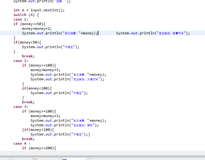 break;//表示变量满足此条件,并且执行完对应的语句之后,跳出循环。否则代码会继续向下执行,知道遇到break跳出循环,否则其他判断条件的程序也会被执行。