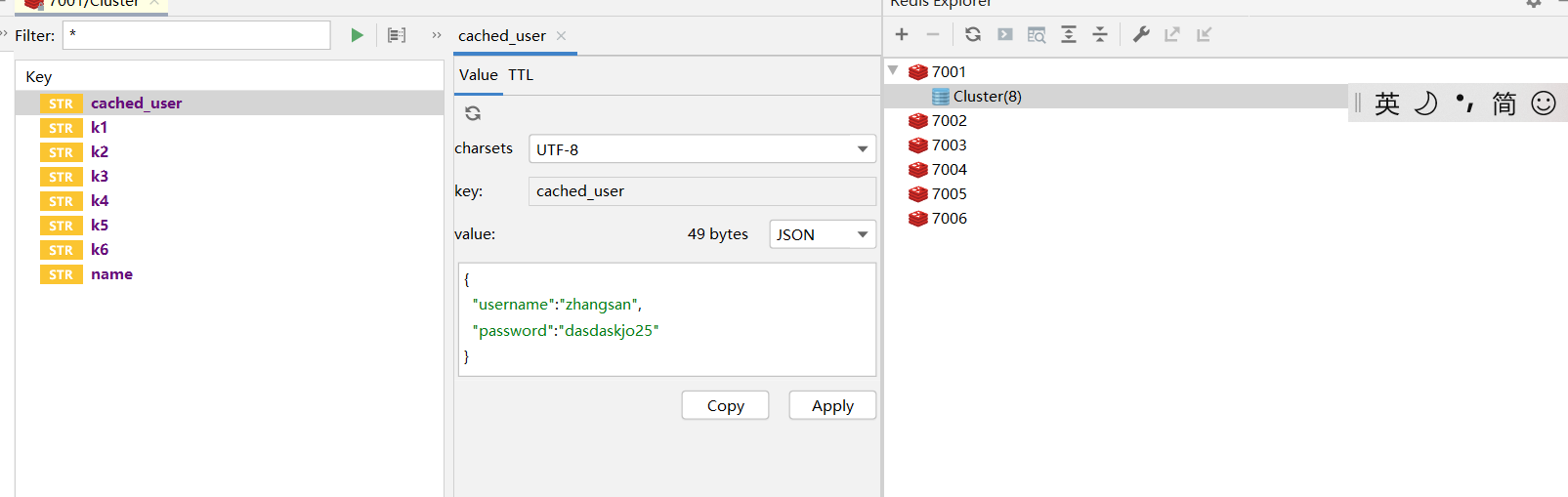 redisDAO.set("cached_user", "{\"username\": \"zhangsan\", \"password\": dasdaskjo25}") ;