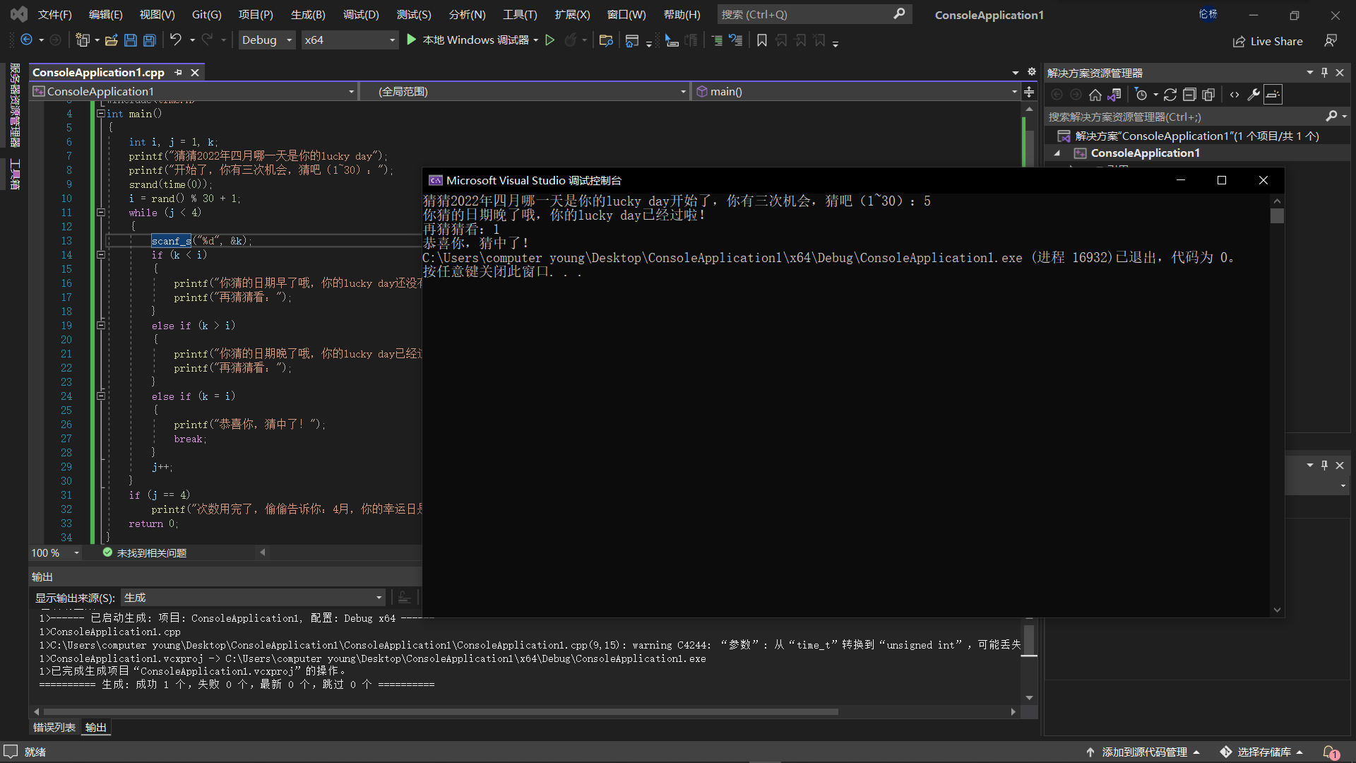 printf("猜猜2022年四月哪一天是你的lucky day");