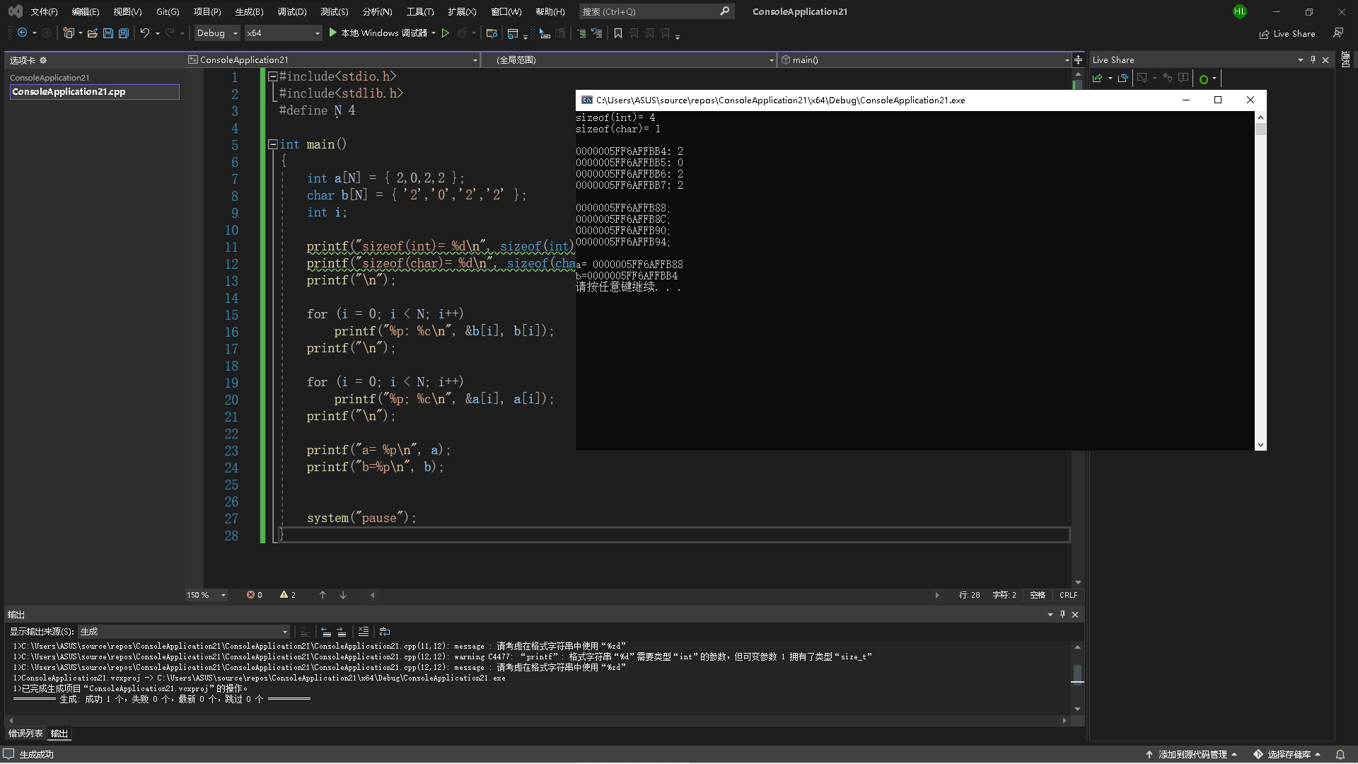 printf("%p; %c\n",&a[i],a[i]);