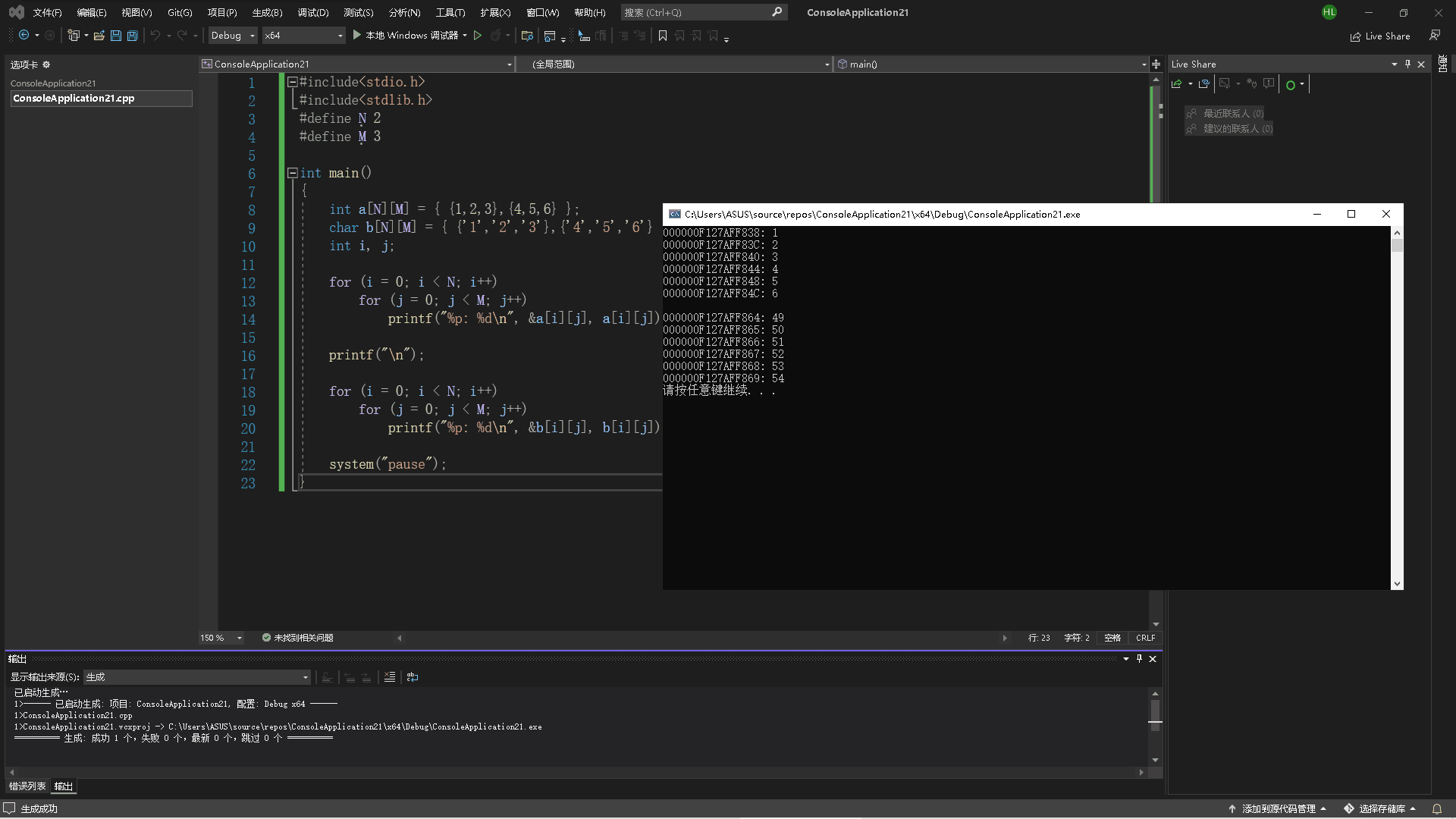 printf("%p: %d\n", &b[i][j], b[i][j]);