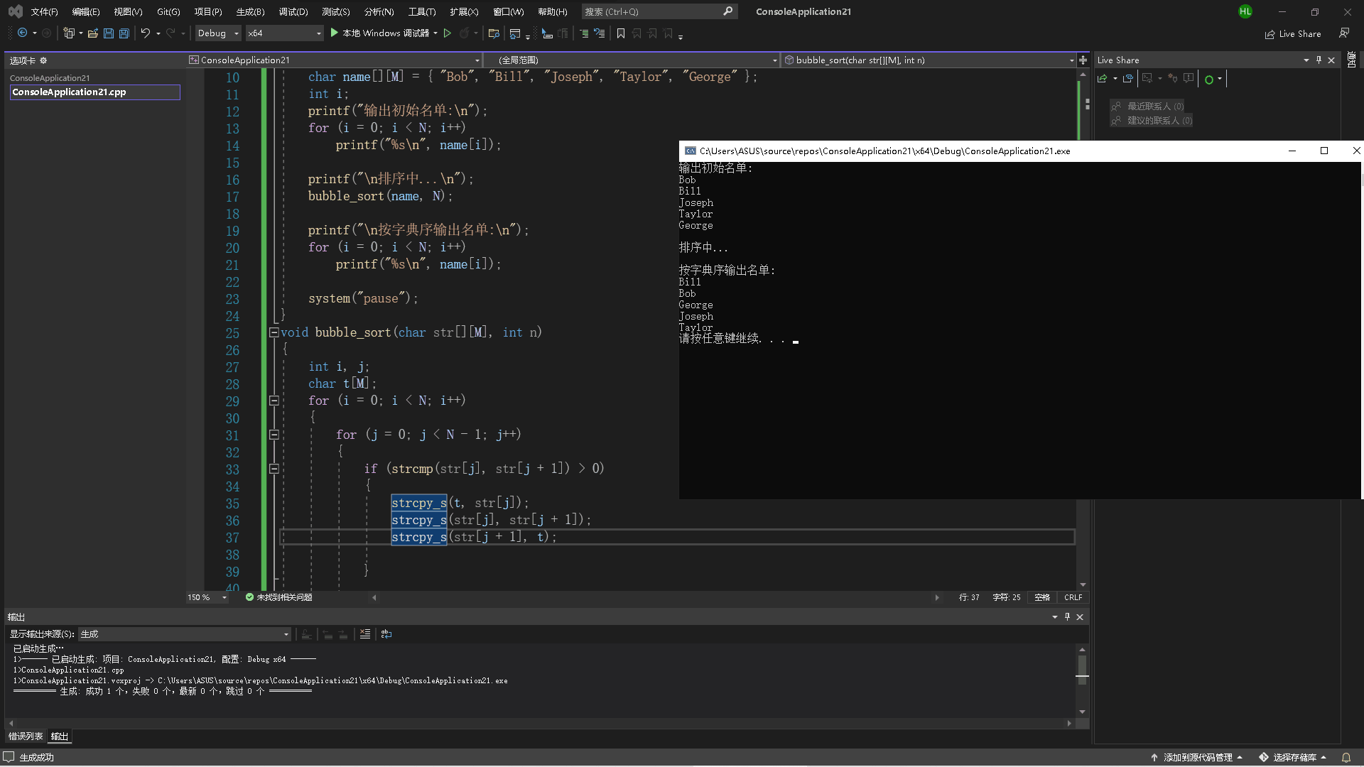 printf("\n按字典序输出名单:\n");