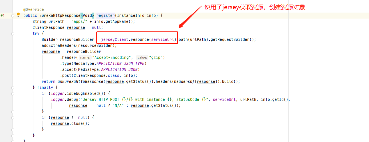 进入eurekaTransport.registrationClient.register(instanceInfo);