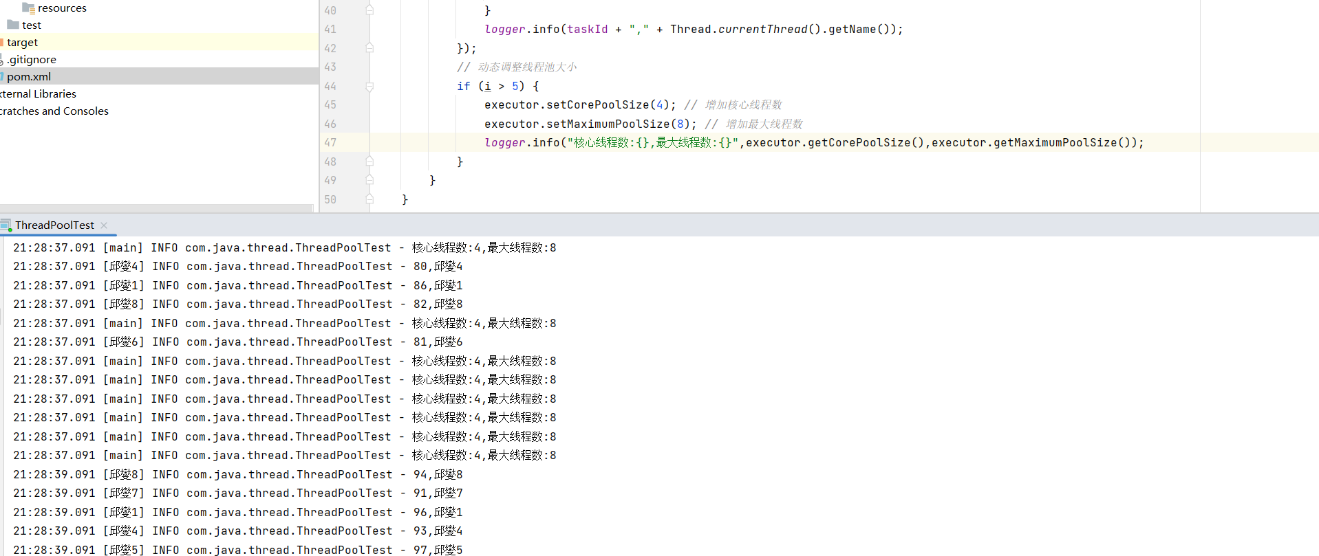 logger.info("核心线程数:{},最大线程数:{}",executor.getCorePoolSize(),executor.getMaximumPoolSize());