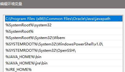 在里面添加【%JAVA_HOME%\bin】【%JAVA_HOME%\jre\bin】【%JRE_HOME%】