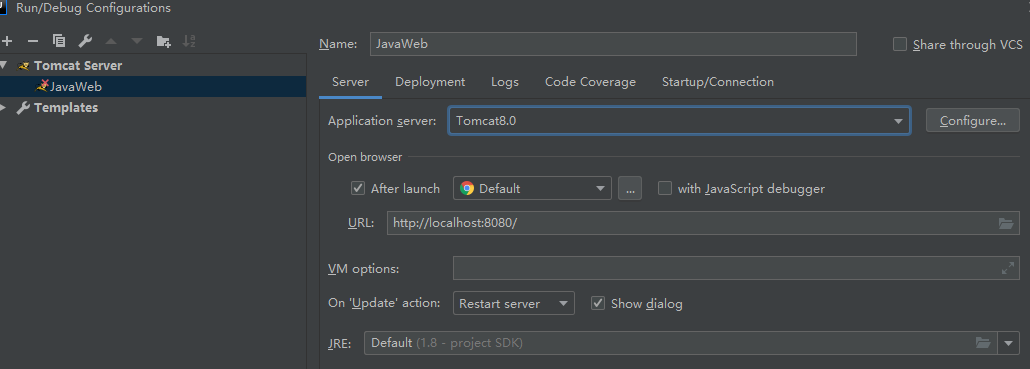 5. 在idea中启动Tomcat服务器