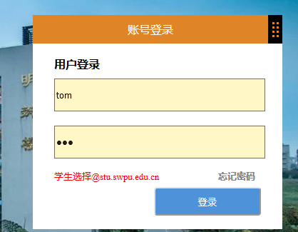 输入用户名:tom 密码:123