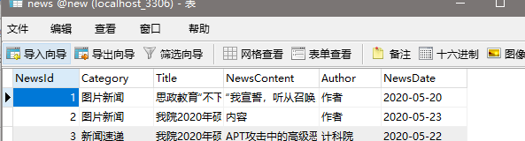 新闻表内的数据