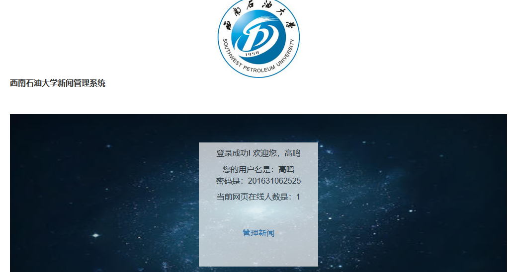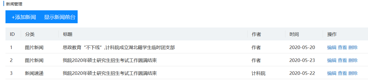 点击上面主页那个管理新闻按钮跳转到新闻管理页面查看最终显示结果
