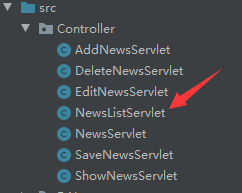 然后再新建Conrtorller包并在包内新建NewsListServlet用来把表中数据显示到JSP页面上