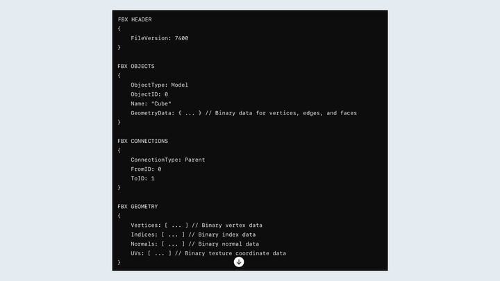 最初由Kaydara为其Filmbox软件开发,FBX现已成为3D数据交换的行业标准格式。它支持动画、纹理及其他高级功能。