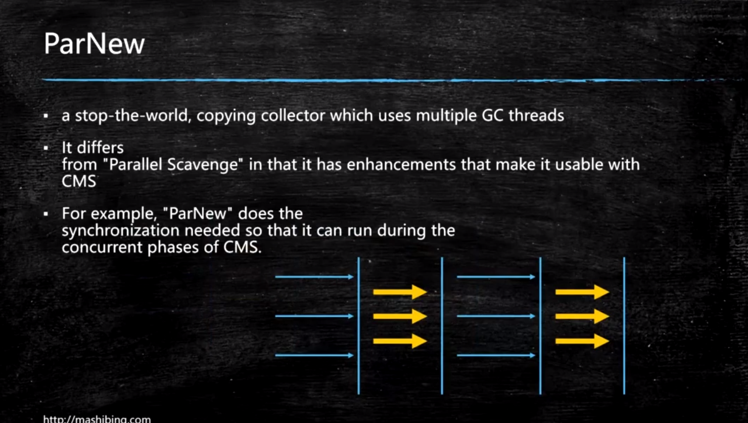 CMS老年代并发,垃圾回收和应用程序同时进行,官方说法降低STW的时间(200毫秒)