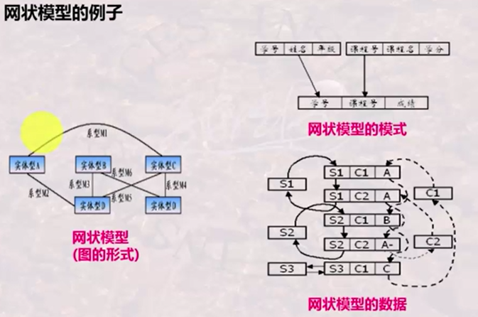 网状模型:基于图的结构,一个实体型能通过多个系型与多个实体型相连