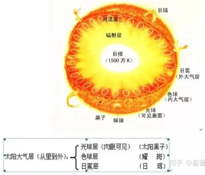 对流区:厚度约0.28太阳半径。太阳物质在对流区急速地上下翻滚,形成湍流,以物质对流的方式向外传送能量。