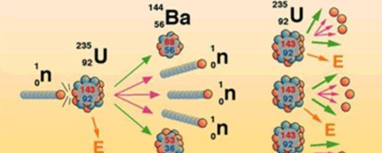原子弹原理:使用核裂变技术,热中子在撞击铀235原子核以后分裂成钡144和氪89,并释放出0.86 MeV的能量,另外还将释放出2-3个中子,生成的中子继续撞击,形成连锁反应。