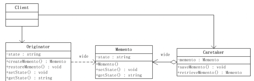 - 备忘录模式实现的⽅式需要保证被保存的对象状态不能被对象从外部访问。